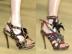 更高、更炫、更多裝飾的超級高跟鞋是這個春夏滿足你的心靈和腳丫的必備佳品。Louis Vuitton的Spicy系列成為這個春夏季節的標桿,Victoria Beckham和Madonna們都為之趨之若鶩。Marc Jacobs以及他的法國的設計團隊打造的由蛇皮、羽毛、流蘇、金屬片組合而成的價格在1140至2040英鎊之間的超級高跟鞋成為奢侈品消費者的Must-have單品……